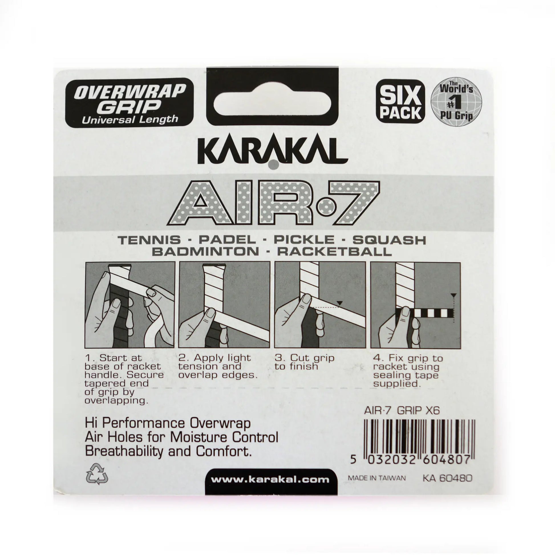 Karakal Air-7 Overwrap Racket Grip – 6 Pack