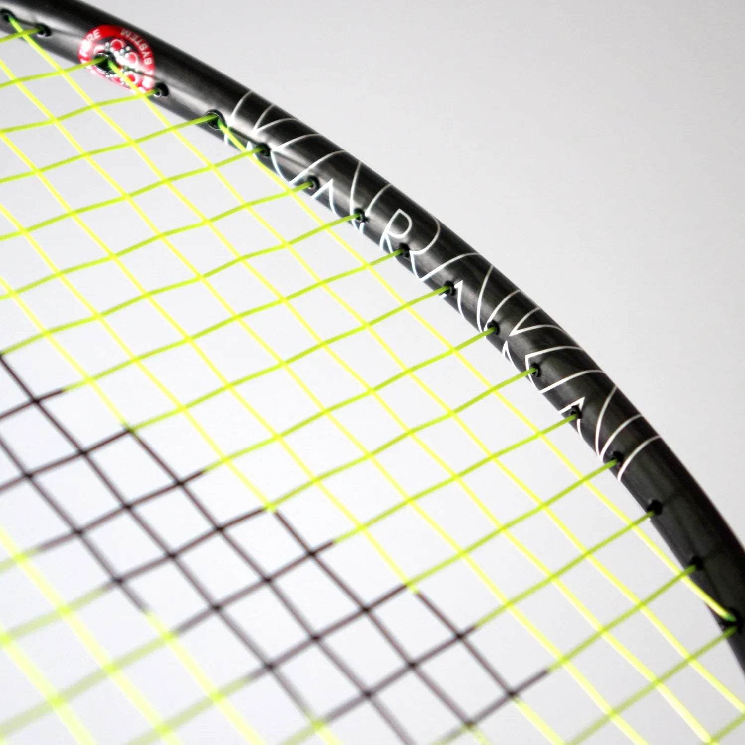 Strung with Karakal Edge 65 badminton string in Lime which offers unmatched power, control and feel, whilst contrasting nicely with the unpainted black graphite frame of the BN60 FF.