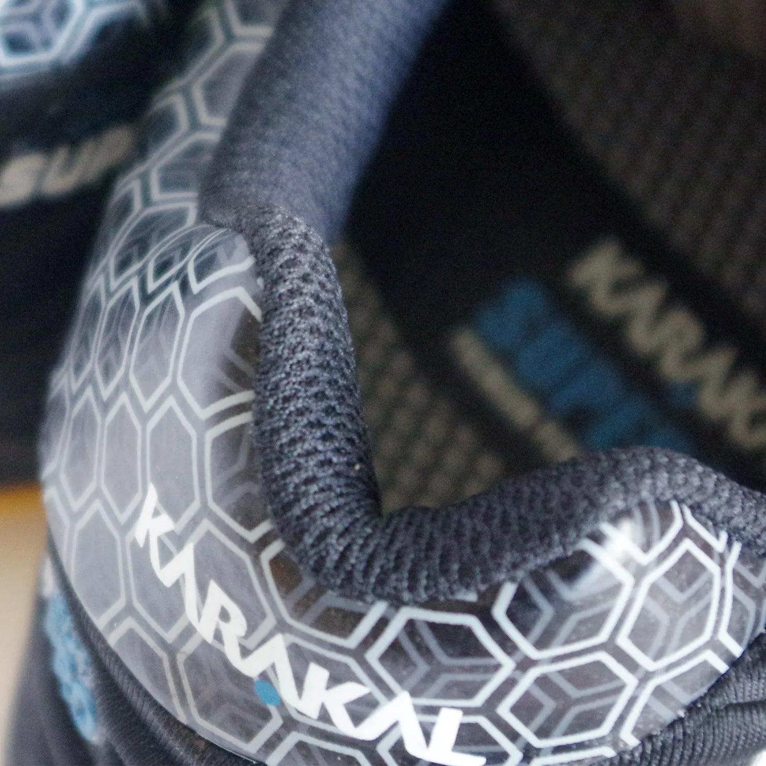 Finally, the Karakal SuperPro has an extra tacky gum rubber sole, with control grooves ensures maximum grip and traction, keeping your feet securely planted on the court, helping to prevent slips and improving agility.