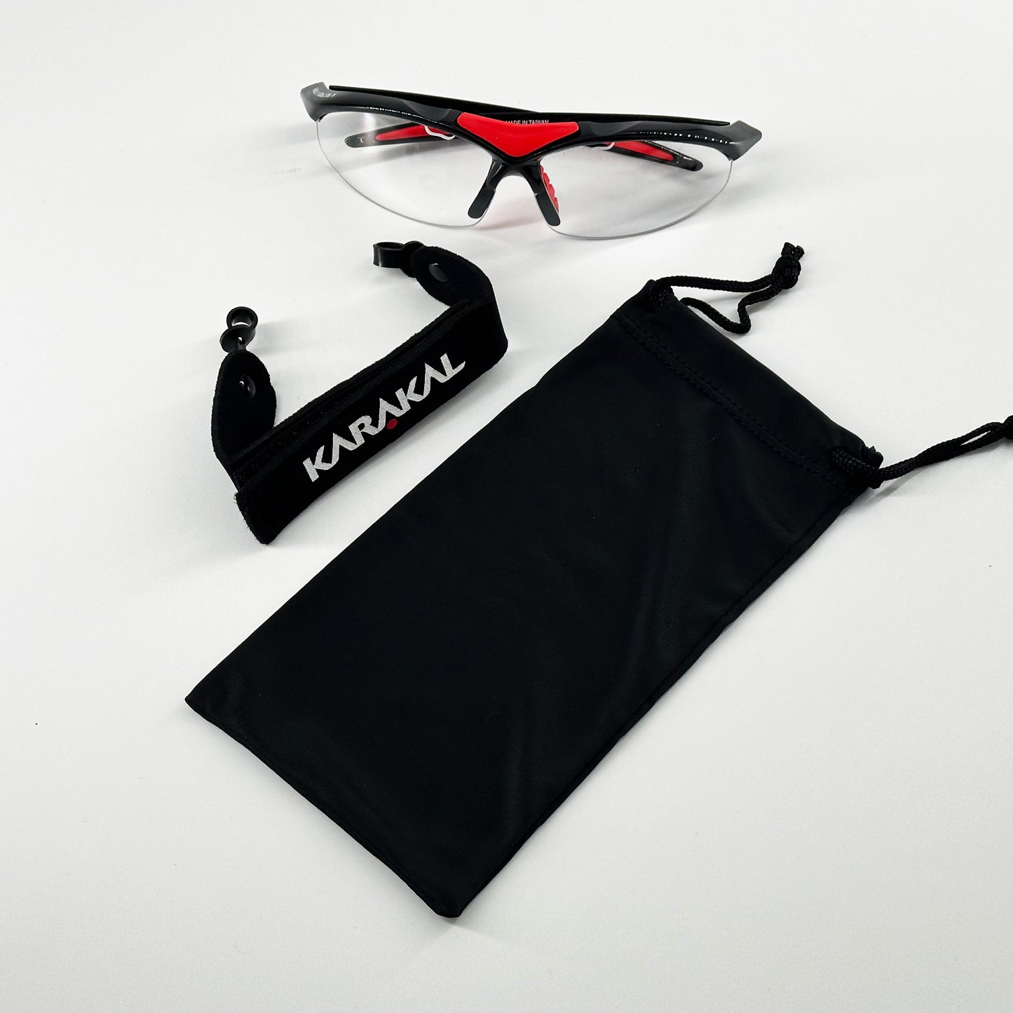 Karakal Adult size Sports Eye Protection Goggles. Available in three colours and come with an adjustable elastic strap.