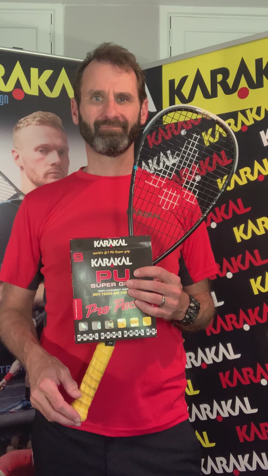Super Tacky, Super Absorbent, Super Thick and Super easy to fit, the Karakal PU Super Grip is the World's No.1 Racket Grip!